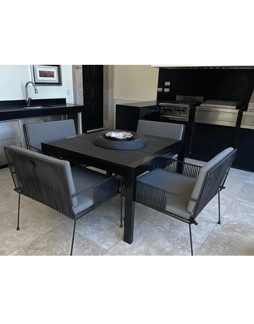 Su diseño esta influenciado por siluetas lineales y la geometría limpia del modernismo compuesto por materiales de alta resistencia para mayor duración. Diseñada para encajar perfectamente en cualquier espacio de exterior, elegida para muchos tipos de entornos como bares, bistrós y jardines.